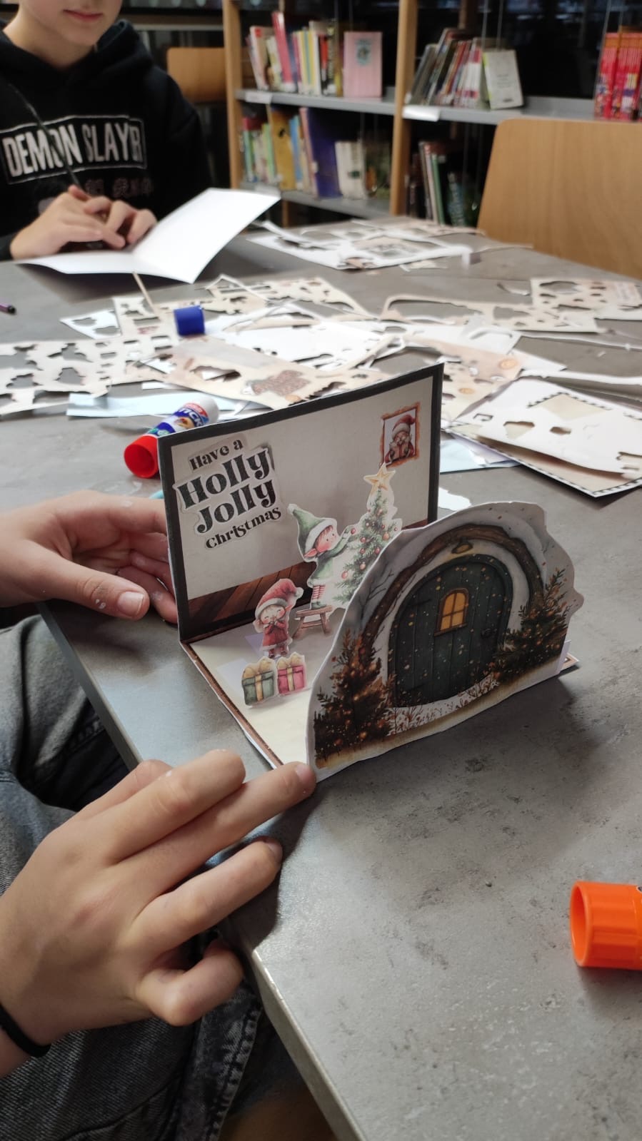 L'atelier carte de vœux a eu lieu au CDI sur le temps de la pause méridienne.