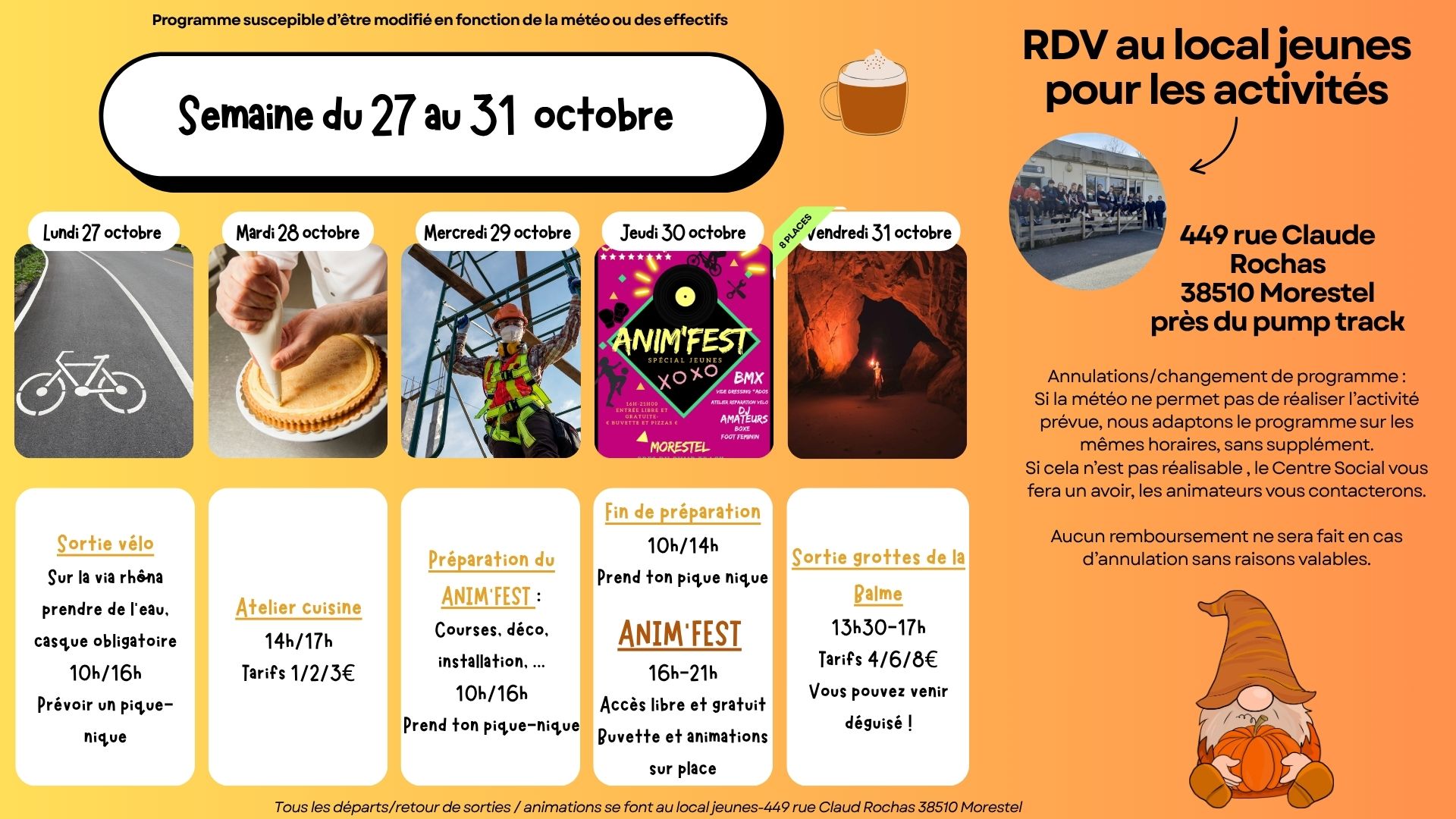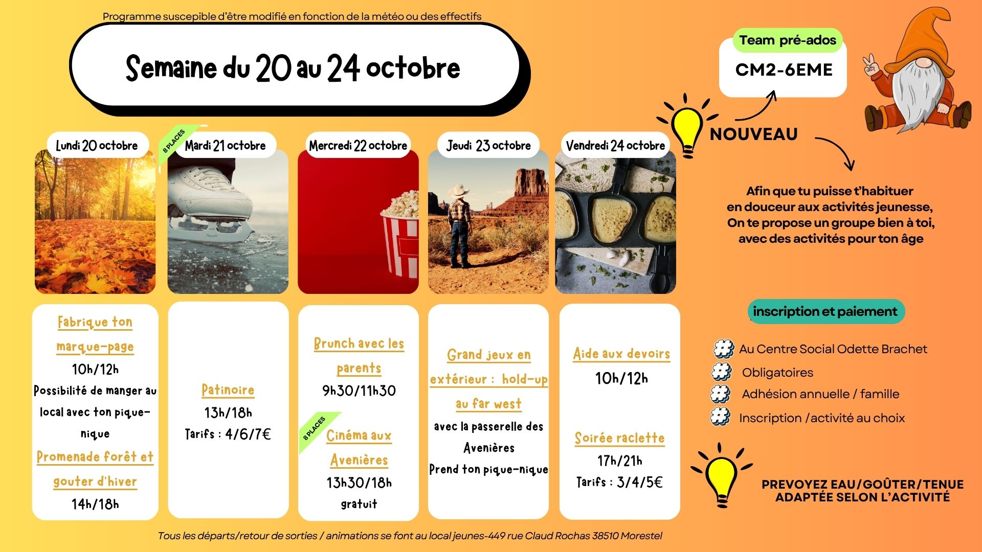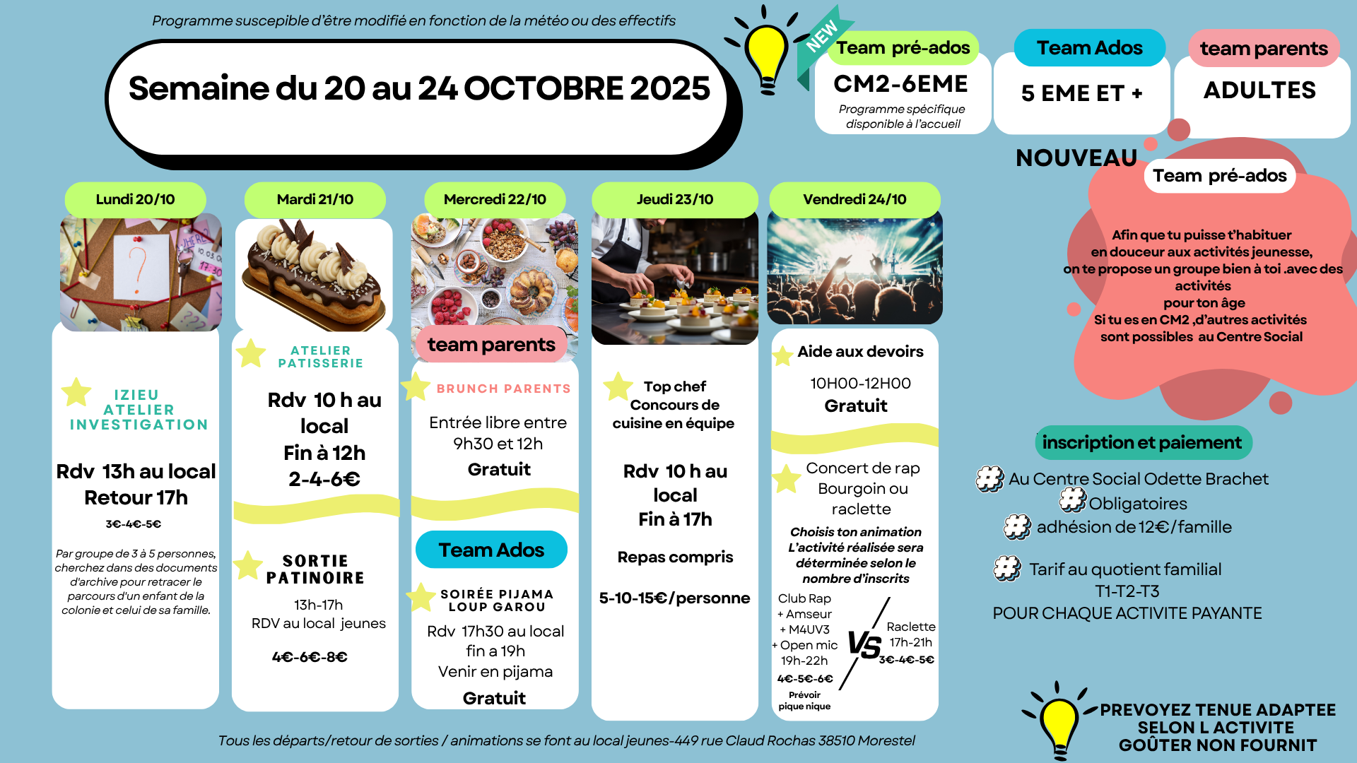Programmes des animations du centre social Odette Brachet pour les vacances d'automne 2025